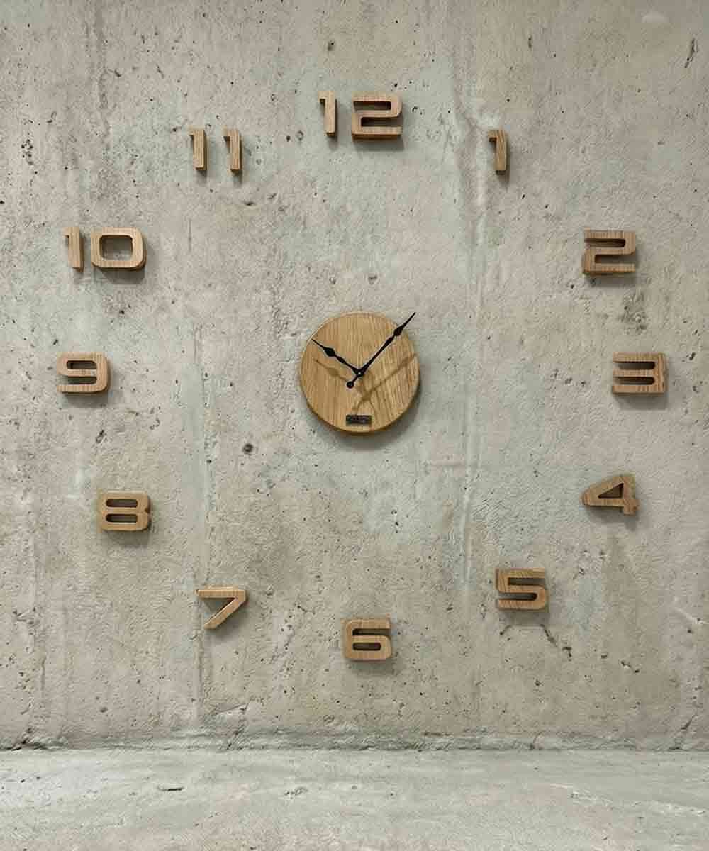 Unikatni zidni sat velikog ali i prilagodljivog formata koji prostor pretvara u moderan, elegantan ambijent. Idealan za velike prostore poput dnevnog boravaka, kancelariju ili restoran. Centralni kružni deo sata izrađen je od tamnog ili svetlog punog drveta, sa minimalističkim kazaljkama, dok su brojevi postavljeni direktno na zid, stvarajući impresivan vizuelni efekat i osećaj dubine. Veliki prečnik sata čini da se ističe kao dominantan dekorativni element, ali i kao funkcionalan dodatak za lako očitavanje vremena iz bilo kog dela prostorije. Uz sam sat se dobija i alat za montažu sa mogućnošću kreiranja varijabilnog prečnika od 40cm do čak 1,6m. VAŽNA NAPOMENA: Sat se postavlja na ravnu površinu. Na slikama koje vidite je samo radi jednoobraznosti slika na sajtu privremeno postavljen na zid od dekorativnog kamena. Postavljanjem na neravne površine ne može da se garantuje dugotrajno ostajanje na zidu pojedinih brojeva.