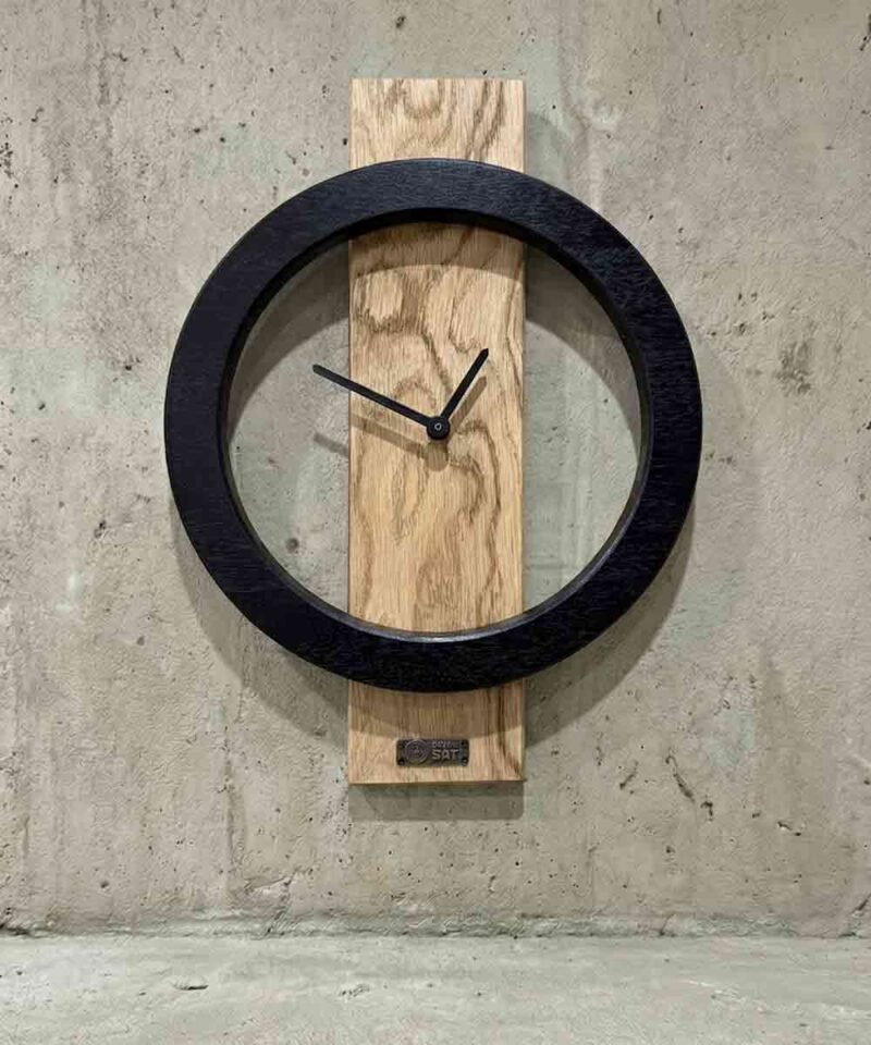 Moderan dizajn koji spaja različite tipove drveta sa belo ili crno mat bojenim delovima na pojedinim opcijama. Dobitna kombinacija koja nikad ne izlazi iz mode. Sat manjih dimenzija koji neće zauzeti mnogo prostora na zidu. Vrlo lako uklopiv zbog dostupnih varijacija.