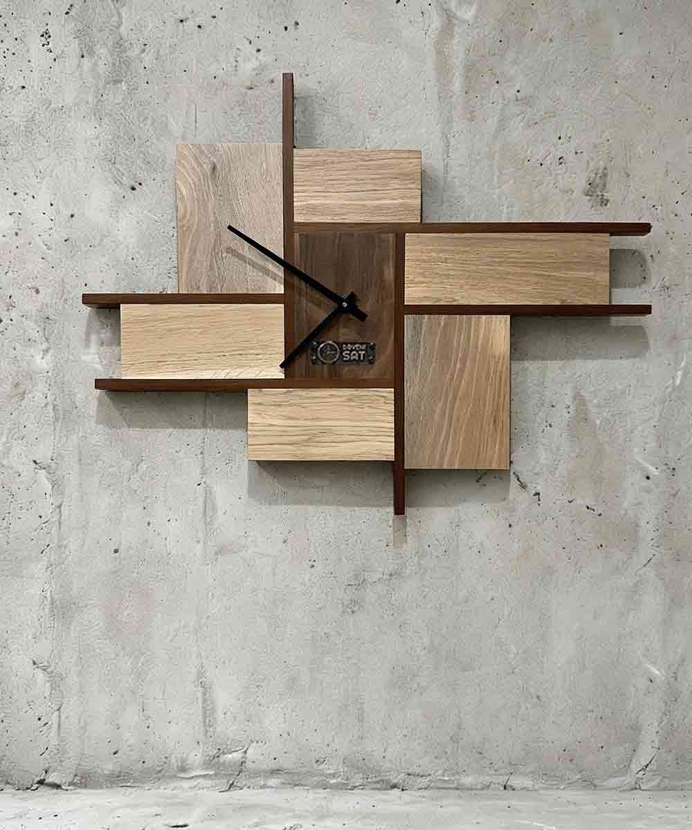 Svetli hrast, parenih grab i orah sa tamnim pravolinijskim detaljima. Sat koji ima svoju priču. Geometrija i priroda se savršeno spajaju.