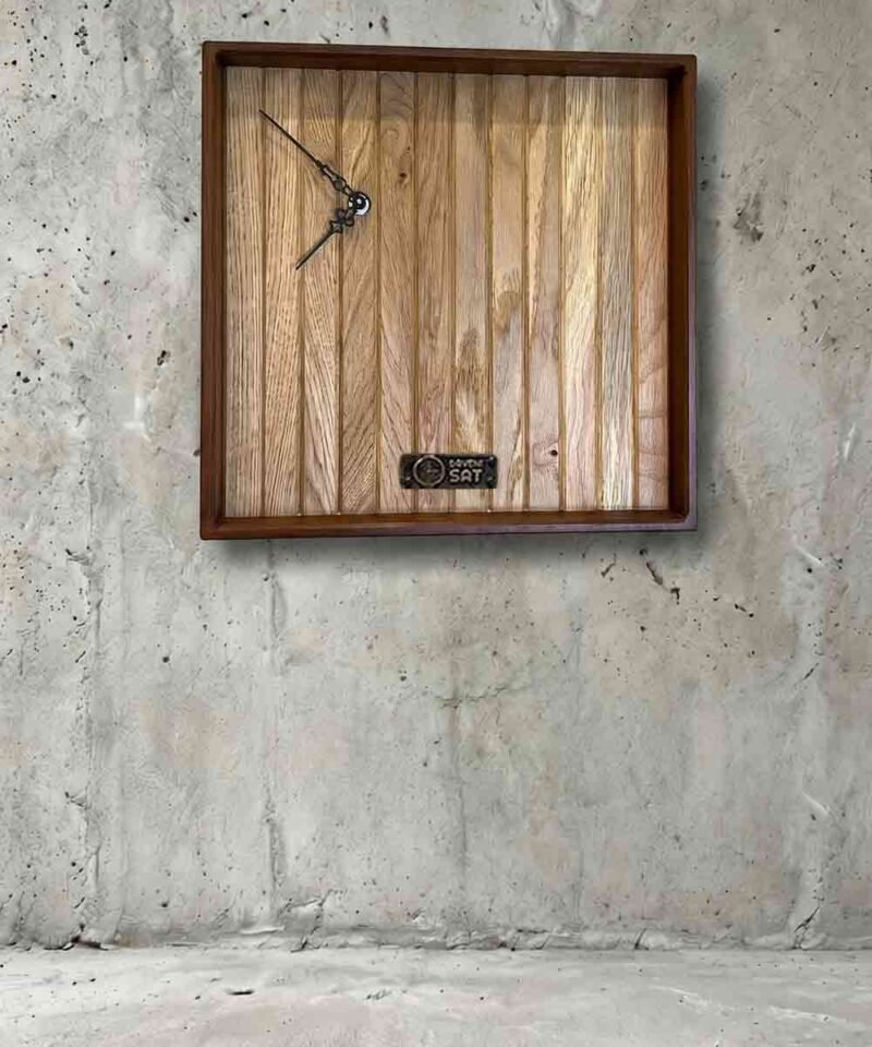 Jedinstveni zidni drveni sat koji će doneti toplinu i eleganciju u vaš dom. Sat “Slika” je ručno izrađen od hrastovine sa tamnim grabovim ramom, što mu daje izgled kao pravo umetničko delo. Kazaljke su postavljene u gornjem levom uglu, što ga čini posebnim i drugačijim od običnih satova.