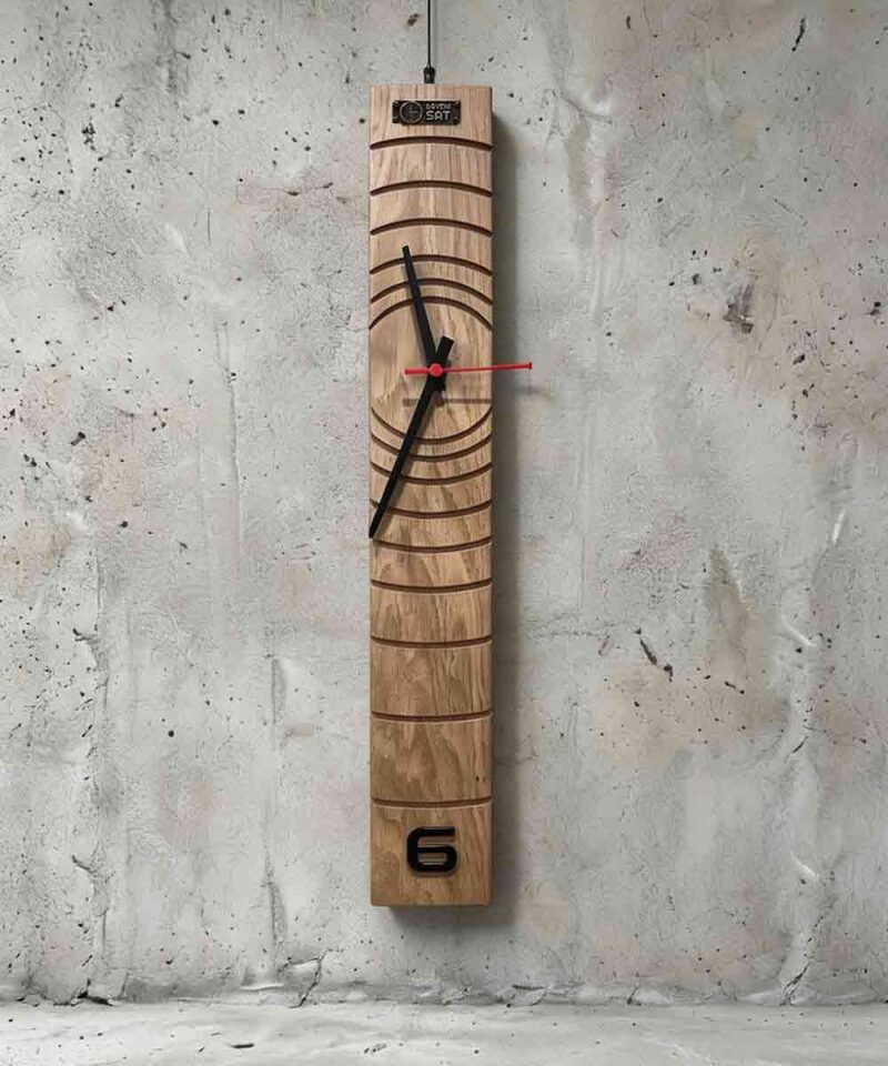 Sat sa toplim drvenim izgledom koji će učiniti tvoj prostor cozinijim. Crne kazaljke su jasne i lakše za čitanje, a mali broj 6 na satu je dodatni detalj. Perfektan je ako voliš stvari koje izgledaju prirodne i nisu previše blesave. Jednostavno ga okačiš na zid i imaš funkcionalan detalj koji izgleda kao umetnost.