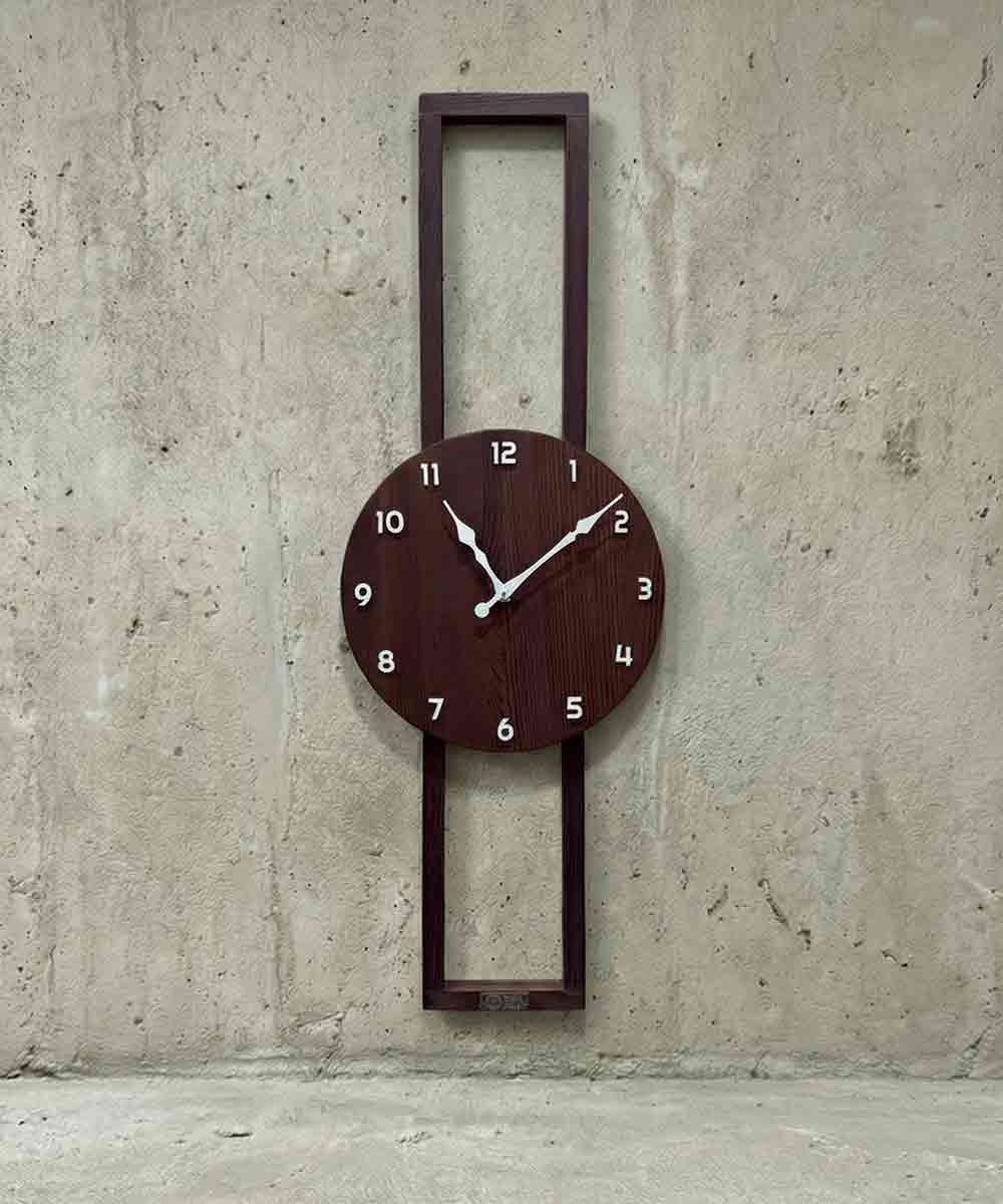 Moderan zidni sat od tamnog parenog jasena s izraženim dekorativnim okvirom i kružnim brojčanikom. Minimalistički dizajn kombinuje klasične kazaljke u svijetloj boji i jasne bele brojeve koji se lako čitaju iz daljine. U pitanju je prirodna boja parenog jasena. Dakle, drvo nije tonirano. Saomo je zaštićeno mat providnim voštanim uljem.